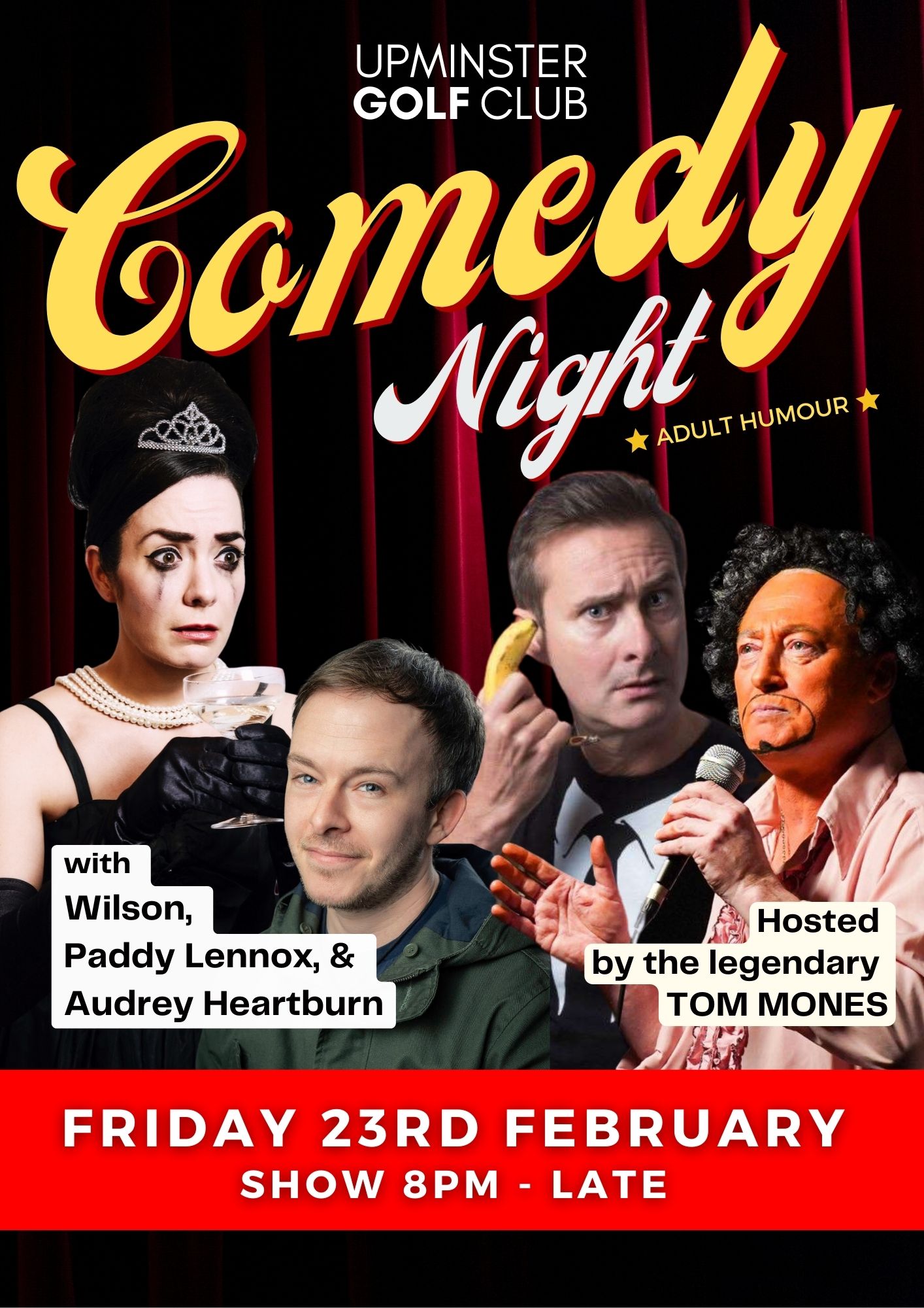 Tom Mones doesn’t just tell jokes—he sings them! He brings a fresh comedic twist to some familiar songs through his hilarious reworked versions. Expect laugh-out-loud moments as he performs hits like “Green, Green Grass of the Old People’s Home” and “What’s Up with My Pussycat?”, as well as his signature performance, a reimagined version of the classic “Delilah”—titled “Alzheimers”